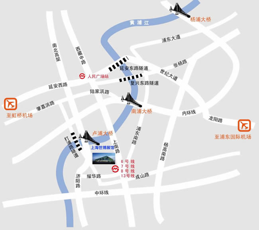 ´î³Ë´ÅÐü¸¡»òµØÌú2ºÅÏßÖÁÁúÑô·վ»»³Ë——µØÌú7ºÅÏßÖÁÒ«»ªÂ·Õ¾»òÖлªÒÕÊõ¹¬Õ¾Ï³µ——²½ÐÐÖÁÉϺ£ÊÀ²©Õ¹ÀÀ¹Ý